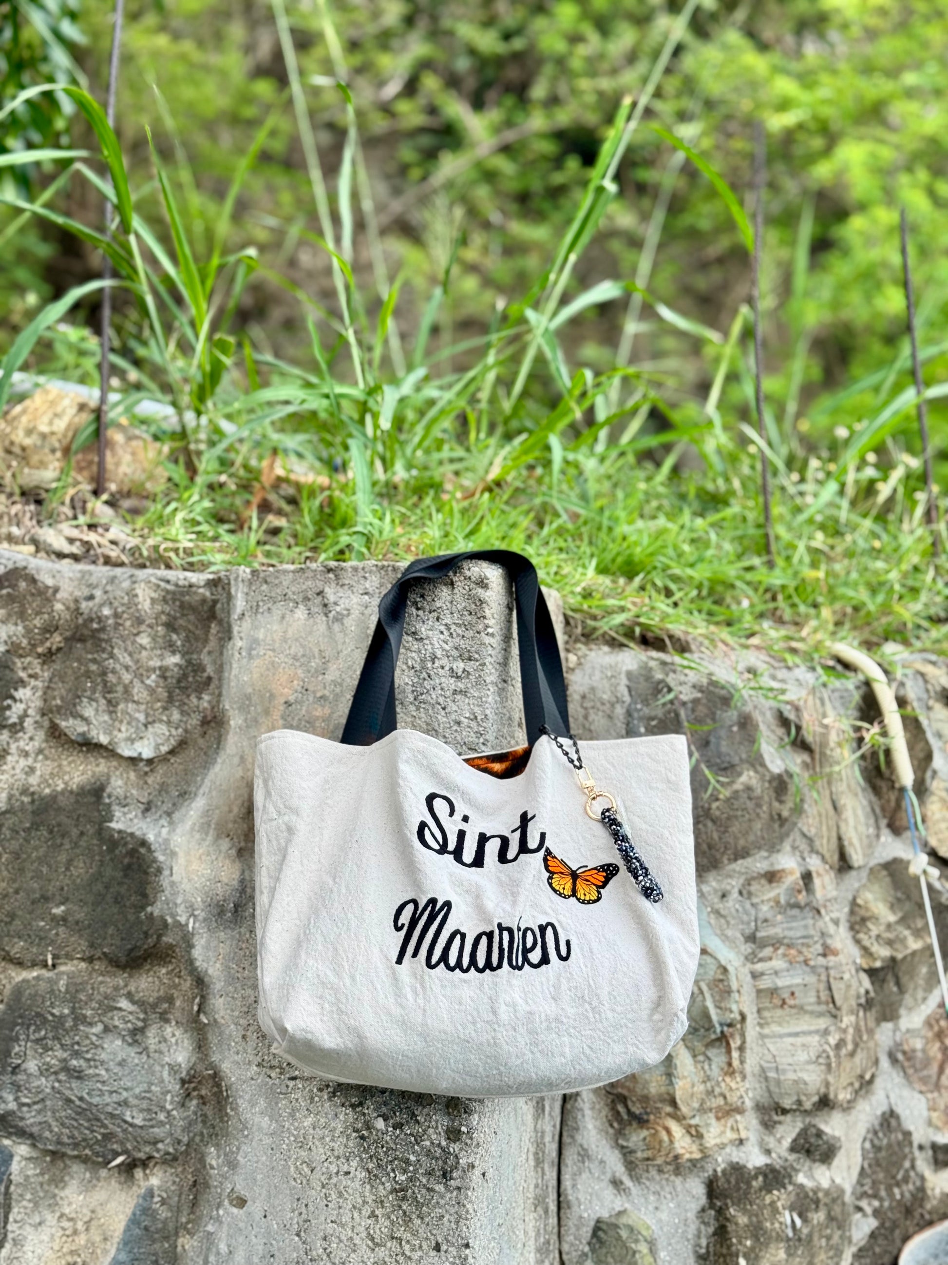 this unique canvas tote with a beautiful butterfly patch and animal print interior encourages you to dive into your wild fashion side