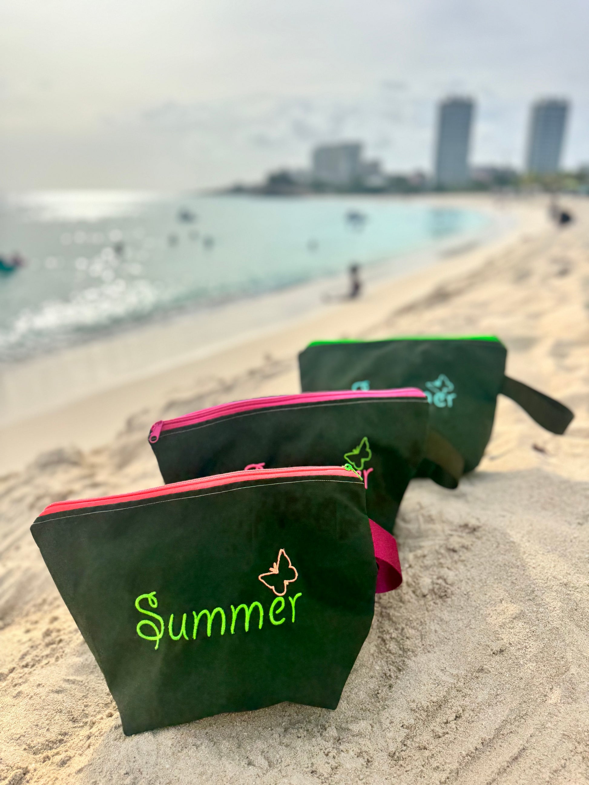 Our handmade multi use pouches are perfect for your beach essentials, sunscreen, travel items or Make-up
